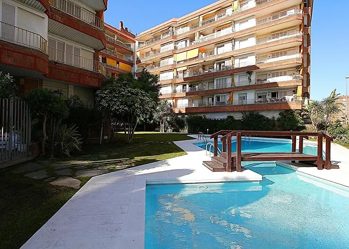 Dotato di un parco acquatico, un casinò e un nightclub, l'appartamento Apartamento America A094 Appartamento si trova a Lloret de Mar, a 4.3 km dalla Chiesa di Santa María. Include anche una piscina esterna.